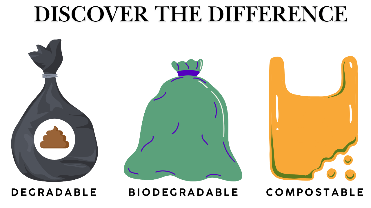 The most misleading of the three due to clever phrasing and visual representations. Constructed from a blend of petroleum, chemicals, and supplementary microorganisms. There are no established time frames, criteria, or certifications necessary to authenticate or substantiate any assertions regarding the process or duration of decomposition. Requires several years to decompose.